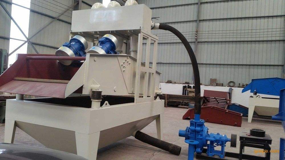 直线筛输出细砂含水量(25%)调解细度模数可通过改变泵的转速,改变砂浆浓度,调节水量,更换出砂嘴来实现,从而完成清洗脱水和分级三种功能。